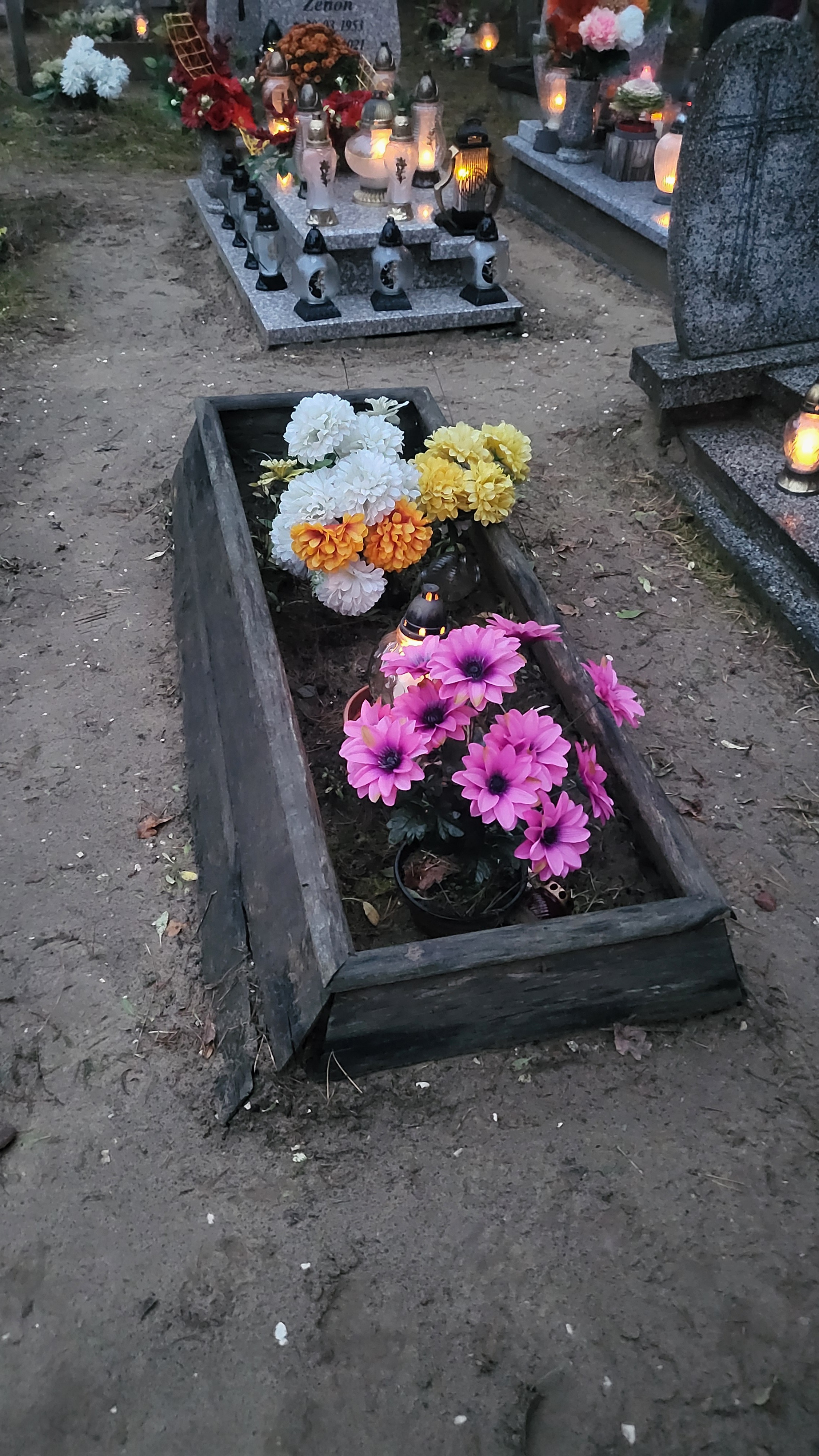 Ciekawe czy osoby, które przychodzą do sąsiednich nagrobków wiedzą kto tam leży ale bez podania nazwiska wyszukiwarka nie pokaże czyj to grób.