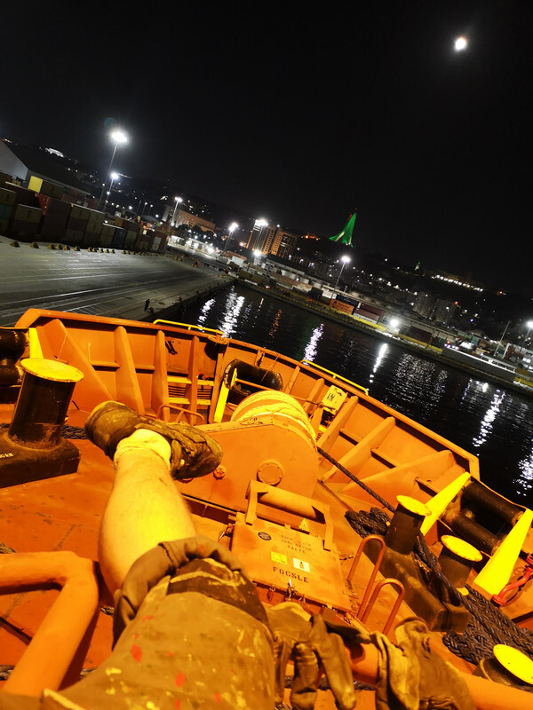 @Obserwator_od_10_lat: to jest krawędź kluzy pokładowej, zaraz cyknę całość jak zejdę z mostka. Takie elementy jak krawędzie, albo coś wystającego, zawsze jest pomalowane na żółto, żeby nie uderzyć kolanem po ciemku, tak wiesz, dla bezpieczeństwa własnego