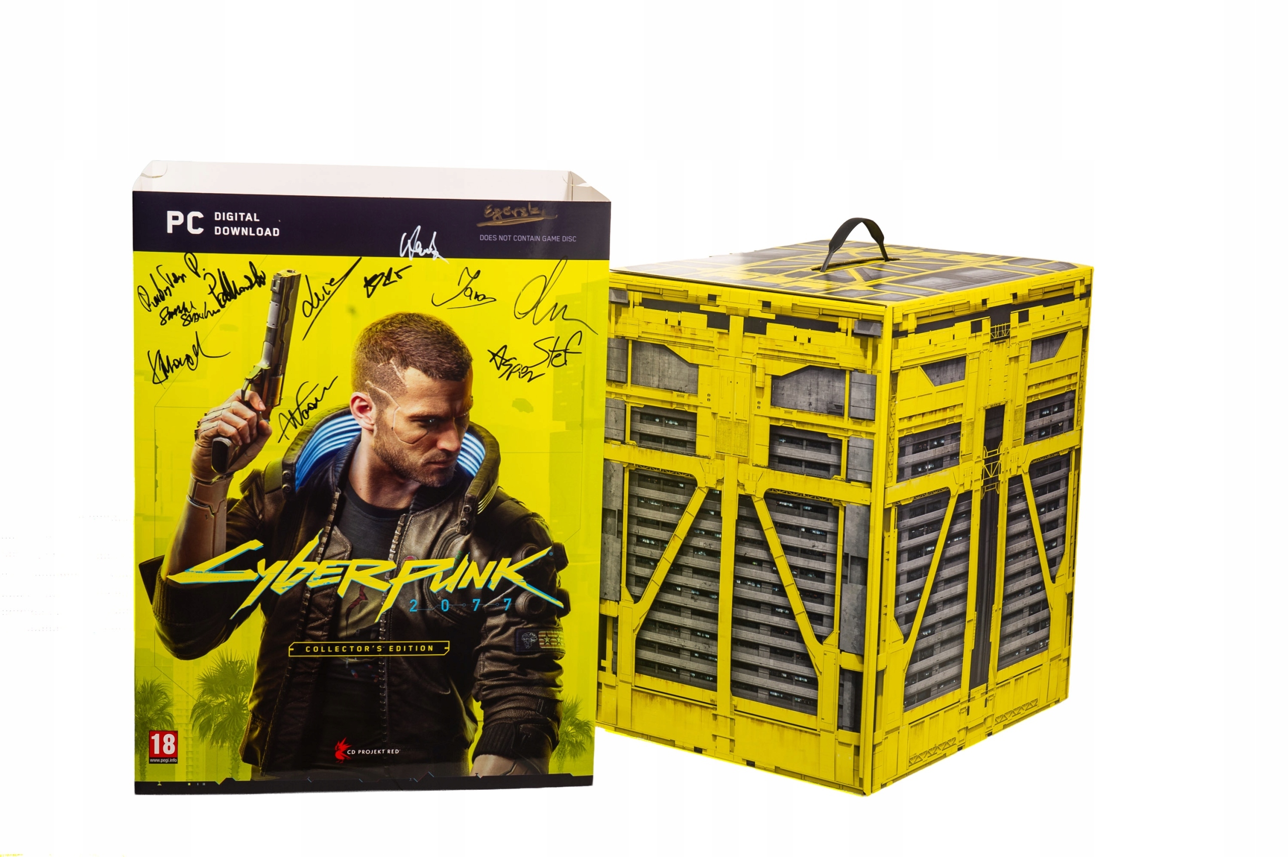 A tam między innymi kolekcjonerka Cyberpunk 2077 na PC z autografami ekipy CD Projekt Red, książki z podpisami Johna Romero i Dark Archona oraz winyl z Frostpunk 2 z sygnaturą Piotra Musiała!