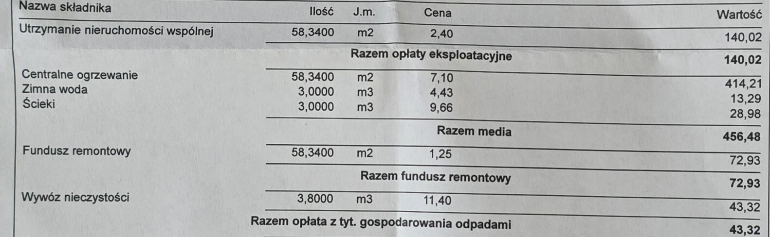 Byłem właścicielem niezamieszkanego mieszkania (w którym odłączyłem wodę i prąd) przez 20 miesięcy, w ramach comiesięcznej opłaty za lokal (ok. 550 zł) zapłaciłem 20mc * 170 = 3400 zł na same zaliczki na C.O., jednak finalnie otrzymałem tylko 800 zł zwrotu. Kiedy zapytałem o przyczynę dyspropocji (3400-800=2600 zł), poinformowano mnie, że: