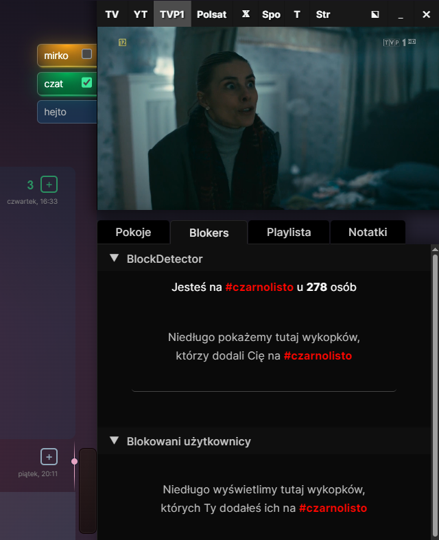 Na mikroczacie funkcja się nazywa BlockDetector i pokazuje ile globalnie użytkowników na wykopopie ma cię na czarnej liście?