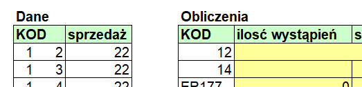 Mam KOD który jest w dwóch kolumnach , muszę zsumować ilość jego występowania w innej tabeli.
