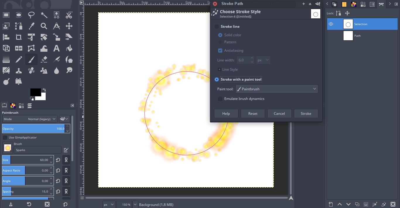 @xan-kreigor: Obojętnie jaka wersja. Zaznaczasz koło narzędziem do zaznaczania, przekształcasz go w ścieżkę i "rysujesz" dowolnym narzędziem na ścieżce. Inny sposób to zrobienie zaznaczenie koła, obramowanie go i wypełnienie kolorem.