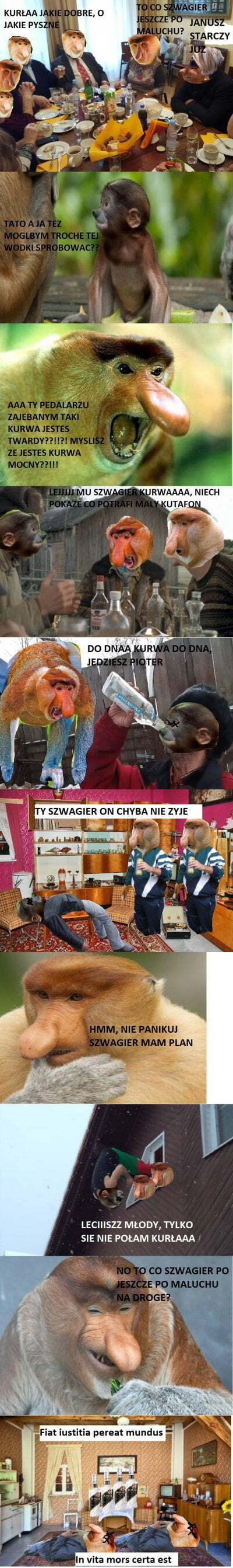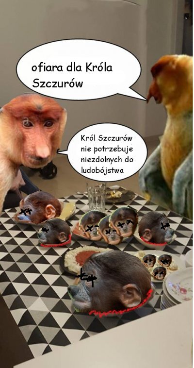 @pawello321: Pjoter odezwał się do swego ojca Janusza: «Ojcze mój!». A gdy ten rzekł: «Oto jestem, mój ciemiężco» - zapytał: «Oto pniak i sikiera, a gdzież jest jagnię na całopalenie?». Janusz odpowiedział: «Pambuk upatrzy sobie jagnię na całopalenie, słabeuszu nienauczony ludobójstwa mój». I szli obydwaj dalej. A gdy przyszli na to miejsce, które Pambuk wskazał, Janusz zbudował tam ołtarz, ułożył na nim pniaka i związawszy syna swego Pjotera położył go