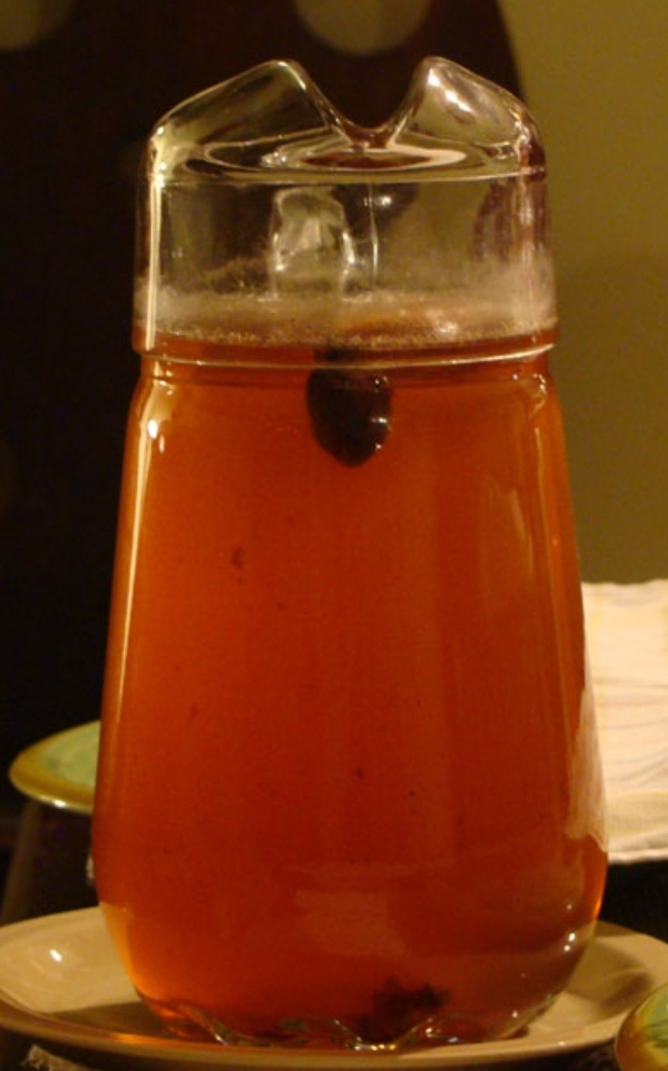 Wlany był do takiego szklanego naczynia z dużym uchem i zadziornym dziubkiem co by łatwiej się nalewało.