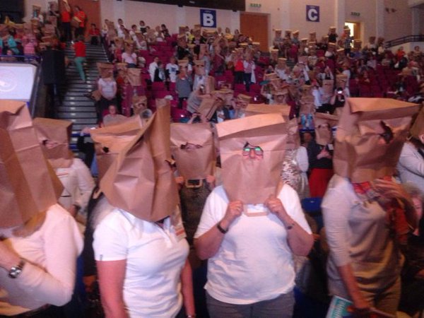 Uczestniczki Kongresu Kobiet założyły na głowy papierowe torby