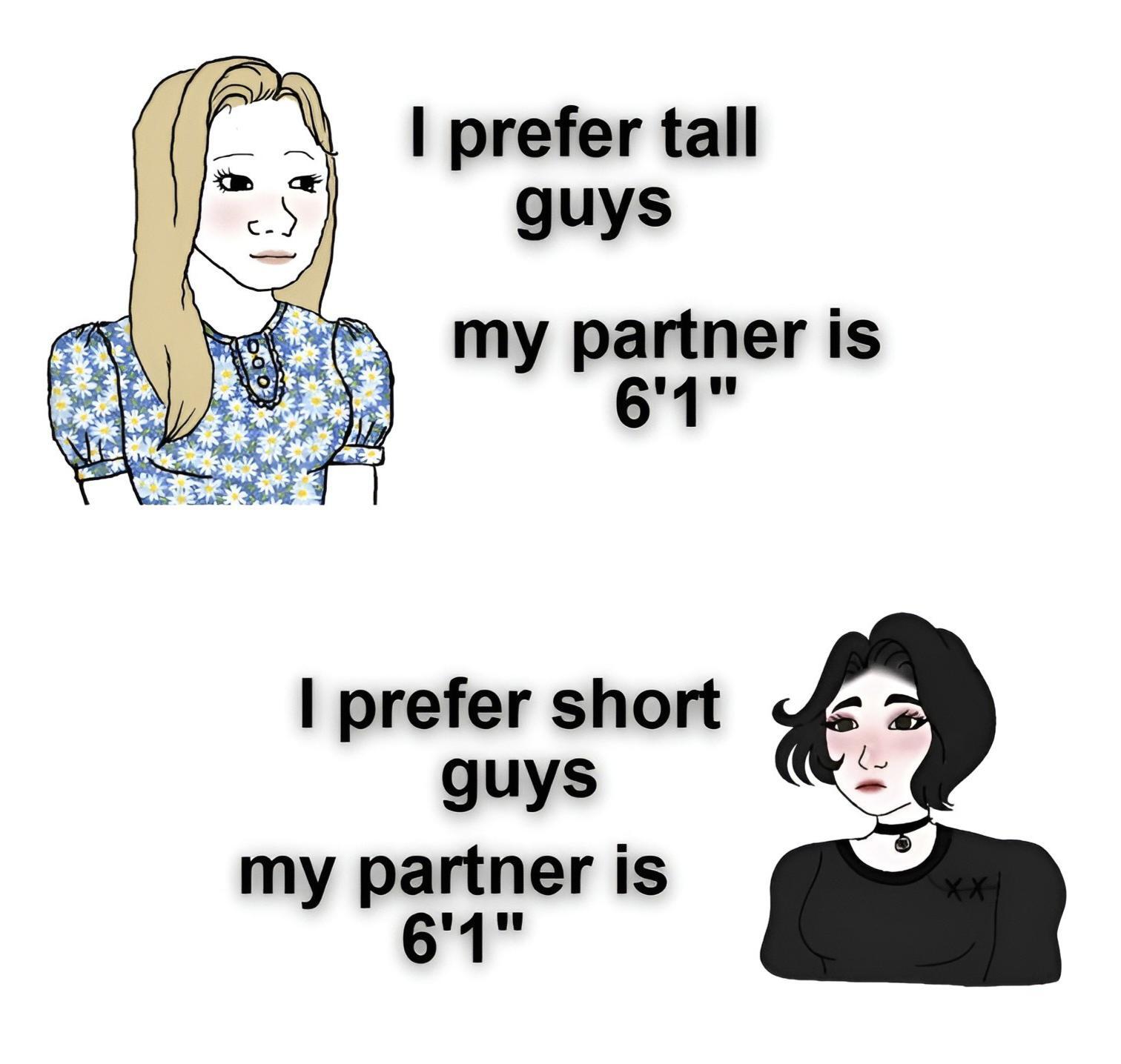 Znowu usłyszałem, że wysokie dziewczyny maja taki sam problem z znalezieniem chłopaka jak niscy mężczyźni z szukaniem partnerki… Zgadnijcie jakie wymagania ma ta wysoka dziewczyna o której usłyszałem jako przykład xD