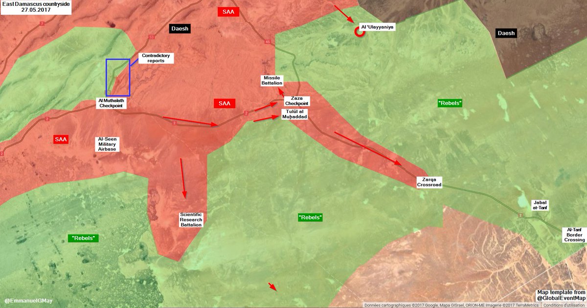 @rybak_fischermann: Widzę, że na razie głównie idą drogą na Maskanah i tą równoległą do niej. Ciekawe jak zamierzają odbić tereny na zachód od nich. Może dojdą do Madinat al far i odbiją aż do jeziora Jabbul żeby ich zamknąć?