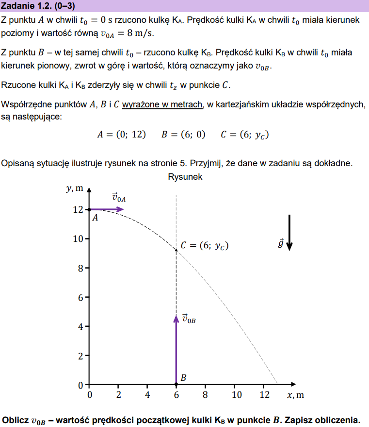 - prędkość początkowa w kierunku poziomym V0A = 8 m/s