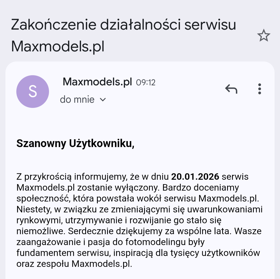 Serwis Maxmodels kończy swoją działalność