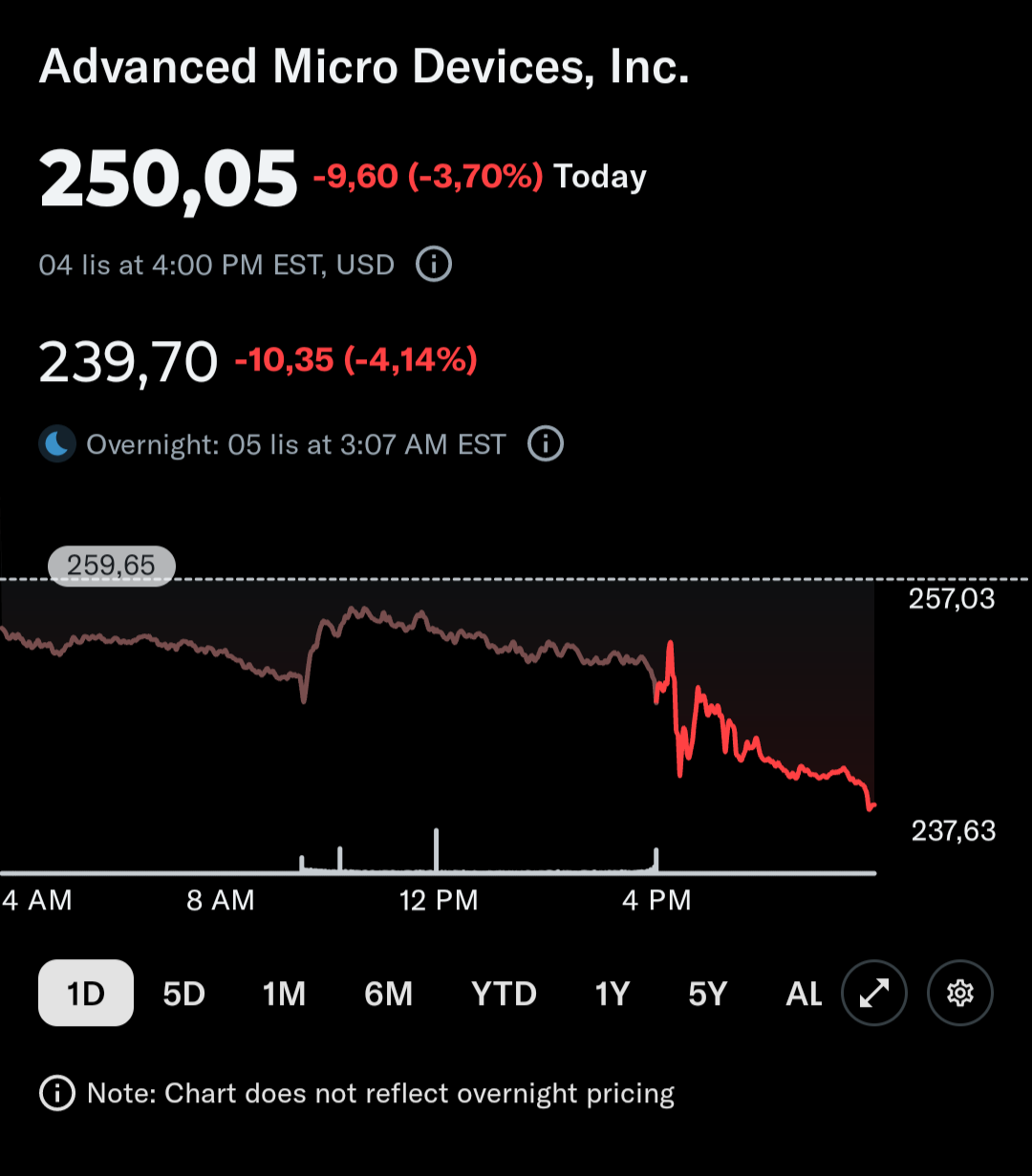 Analityk Barclays, Tom O'Malley, podniósł cenę docelową akcji AMD do 300 USD z 200 USD, utrzymując rating "Overweight". Stwierdził, że umowa z OpenAI, obejmująca warranty powiązane z osiągnięciami w zakresie cen akcji, może zwiększyć kwartalne przychody o około 4,5 mld USD do 2026 roku, co potencjalnie przełoży się na wzrost kwartalnego zysku na akcję (EPS)