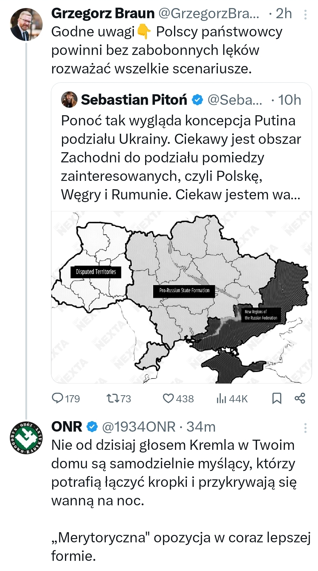 @Polasz: Miedwiediew znów ma racją:) A Pitoń to wrzuta naszych służb na prawicę( pytajcie go jak potraktował Leszka Sykulskiego) tak samo jak Olszański.. Dlaczego z Braunem sobie dworują nie wiem ale to jest alarmujące.Czy Braun znów ucieknie do windy?