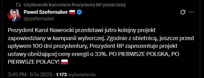 4 listopada 2025 r. prezydent Karol Nawrocki podpisał ustawę dotyczącą morskiej energetyki wiatrowej, przygotowaną przez