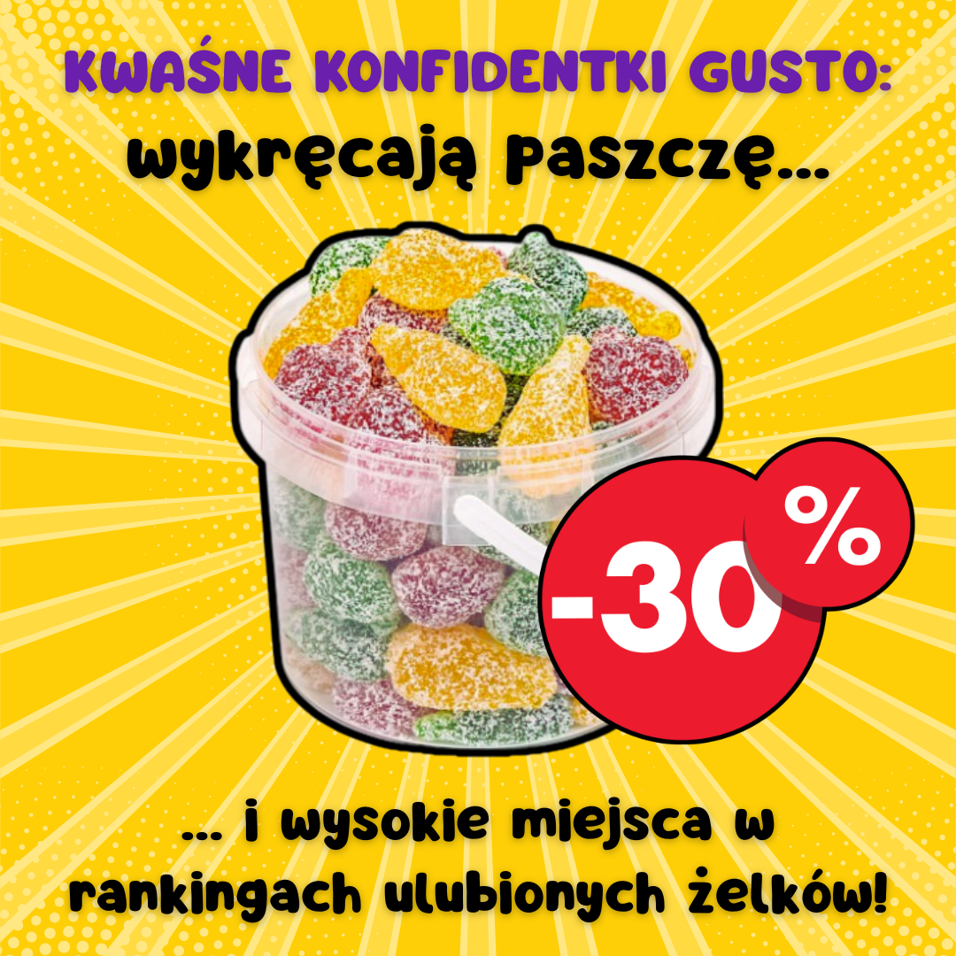 Teraz kwaśne konfidentki 30% taniej. A przy okazji 21 innych produktów, w tym nadżelki, misie LIGHT z erytrytytyt... i inne też zrabatowane niemało.