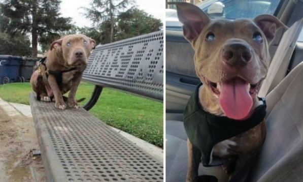 Niewidomy pitbull ze schroniska znajduje nowy dom