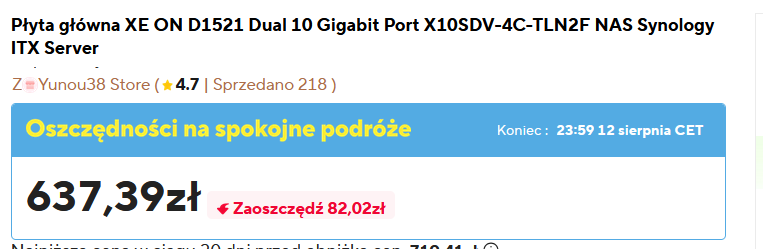 kupiłem za 880zł w przeliczeniu ale to było 03/24 , miałbyć router/nas w jednym , został NAS tylko. bo nie umiałem ogarnąć GRE na linuksie, kumpel przyniósł mikrotika i od strzała VPN zadziałał. to machłem na to ręką. a wydajności więcej póki co nie trzeba mi.