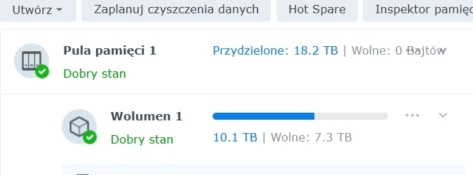 Wpadł mi w ręce jakiś czas temu fajny Synology rs18017xs+, dopakowałem mu dysków, ramu no i tak sobie śmigał. Wczoraj przestał wykrywać mi jeden dysk, zrestartowalem NAS i jedyne do czego dochodzi, to kręcące się wiatraki (najpierw na full, po chwili wchodzi w tryb cichy), oraz mrugająca niebieska dioda. Ledy dysków się nie świecą, te od alarmu też.