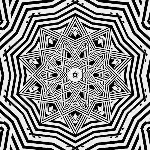 A następnie nałożyłem oba te obrazy na siebie i w ten sposób powstało 8 wierzchołków, coś w rodzaju gwiazdy. Jak widać w centralnej części przecinające się linie tworzą koło, można zatem przypuszczać, że ułożenie linii w figurze wyjściowej nie jest całkowicie przypadkowe.