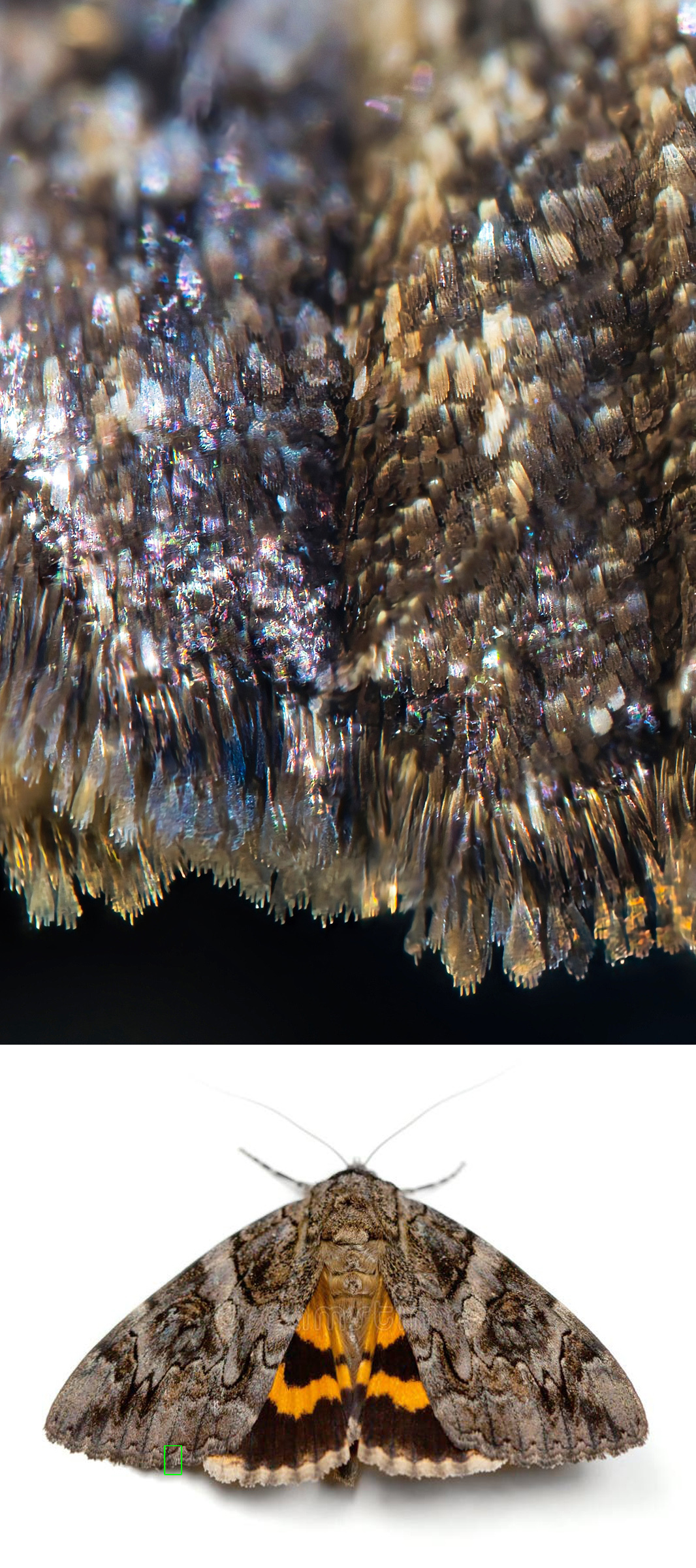 Tym razem skrzydło ćmy. Ćma Wstęgówka. Do samego zdjęcia dołączam zdjęcie ćmy gdzie zaznaczyłem, który dokładnie jest to fragment skrzydła.