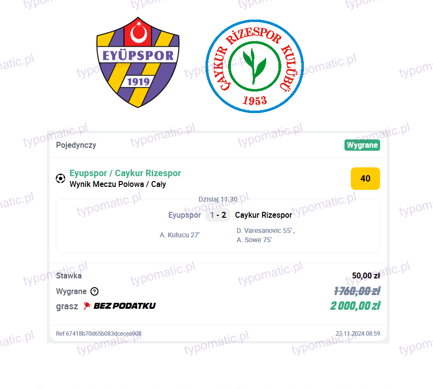 @mr_abcd: problemem jest specyfika tego typu obstawiania, czasami na 10 typów nic się nie trafi, żeby potem trafić wysoki kurs, podawanie każdego typu zaśmieciłoby profil, jedyną opcją pozostaje chyba podawanie propozycji w relacji IG, ale na chwilę obecną jest mało osób zainteresowanych obserwujących profil. Być może, że jakieś propozycje wrzucę od czasu do czasu na ig jeśli coś będzie ciekawego