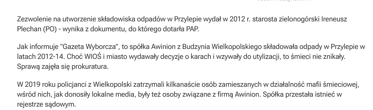 PobierzNa ten moment czarnolistuje za pisowską propagandę. Dodatkowo nie ma żadnego znaczenia kto wydał zgodę - ta firma składowała tam inne rzeczy niż deklarowała. Prezydent w koalicji z PiSem odpowiadają