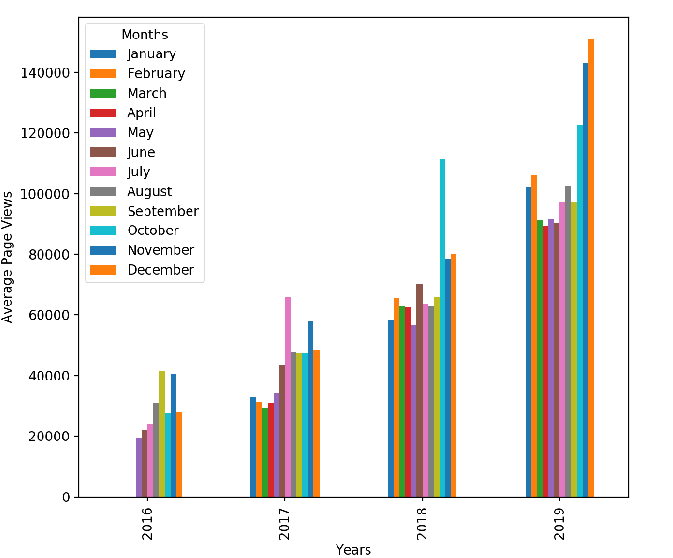 # Assume 'averageviewsbymonth' is a DataFrame with 'Year' and 'Month' as