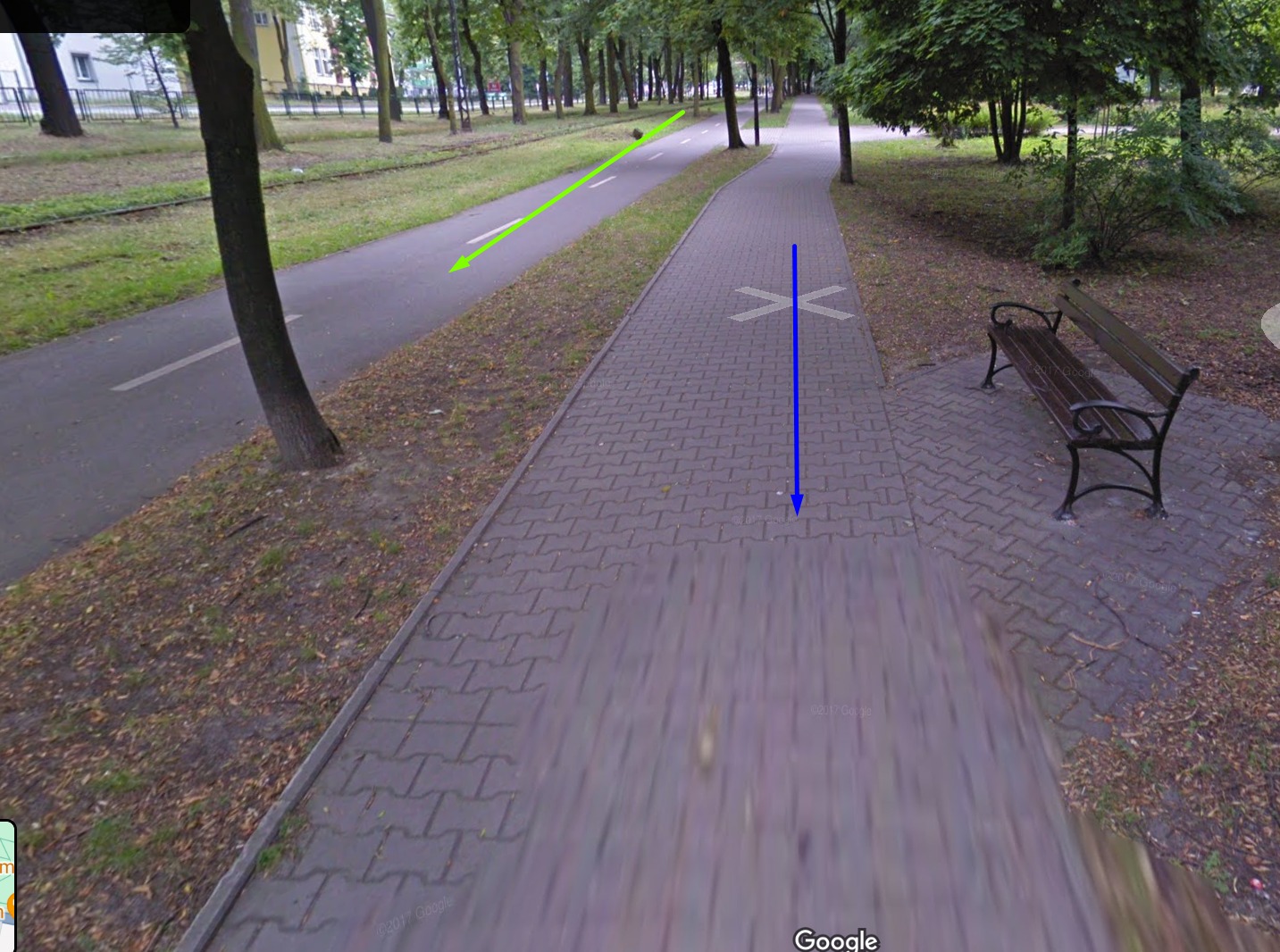 Zielona strzalka to droga rowerowa a niebieska to chodnik. Nie masz pojecia ile razy widze na drodze rowerowej pieszych czy biegaczy.