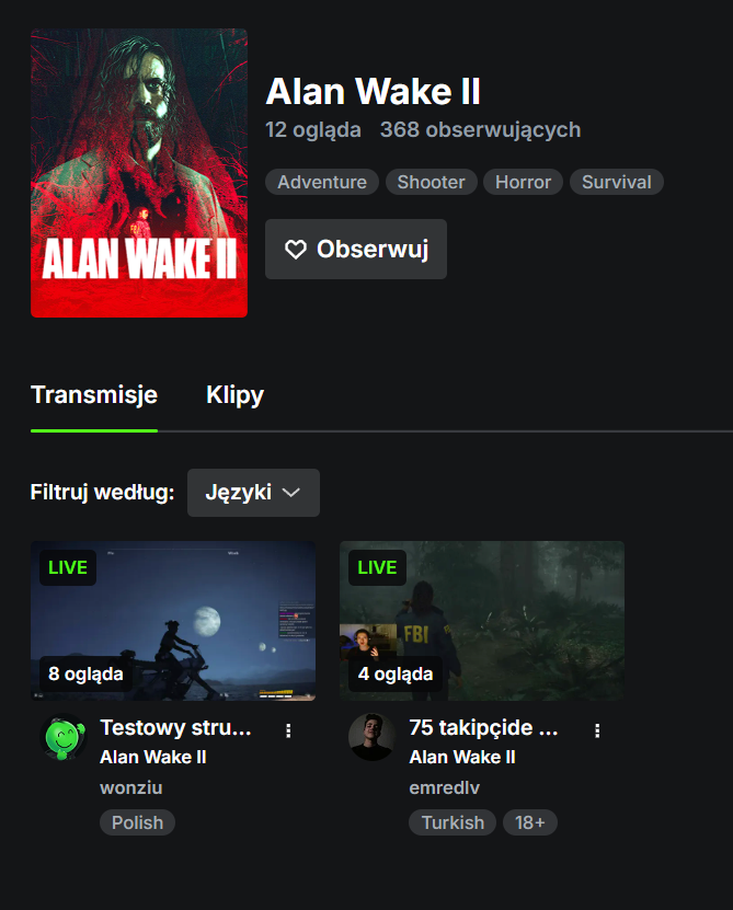 Jak to naprawić, druga rzecz to ustawienie odpowiednich tagów i gry, w którą aktualnie gra Wonziu, bo to się wcale nie zmienia. Tytuł lajwa też.
