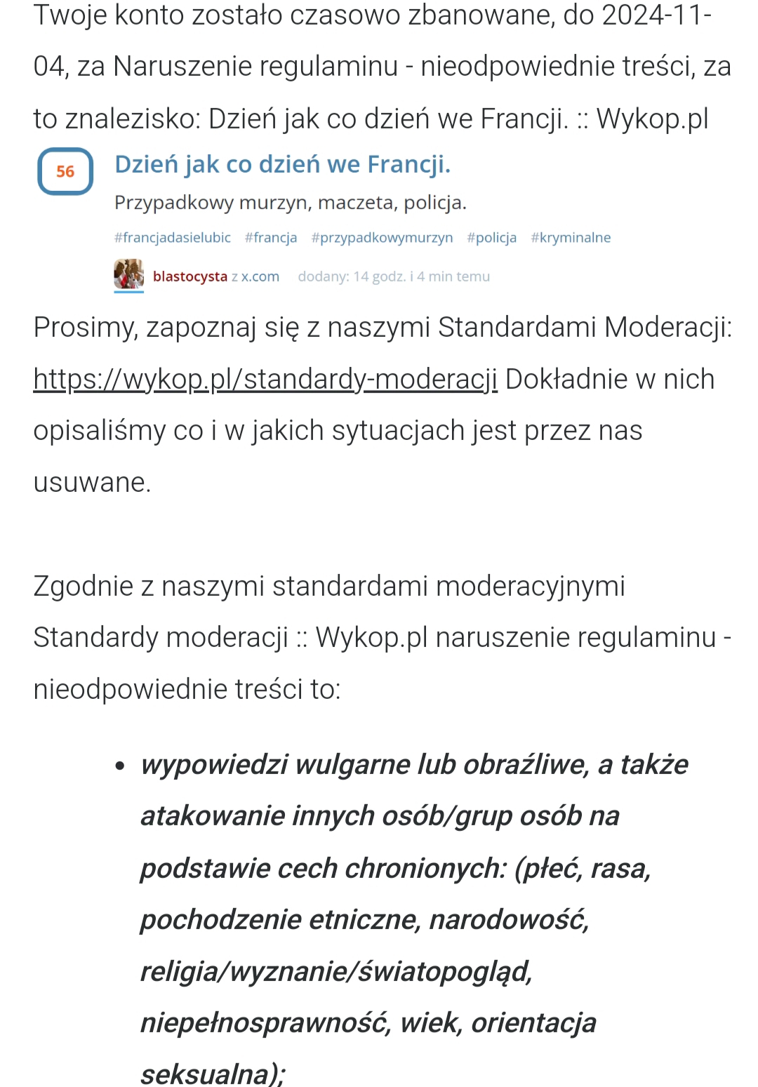 AudreyHorne51 AudreyHorne51 04.11.2024, 18:12:57 via Wykop 0 + @blastocysta: ja kilka razy ostatnio użyłem, ale nie w znalezisku, nie dostałem bana