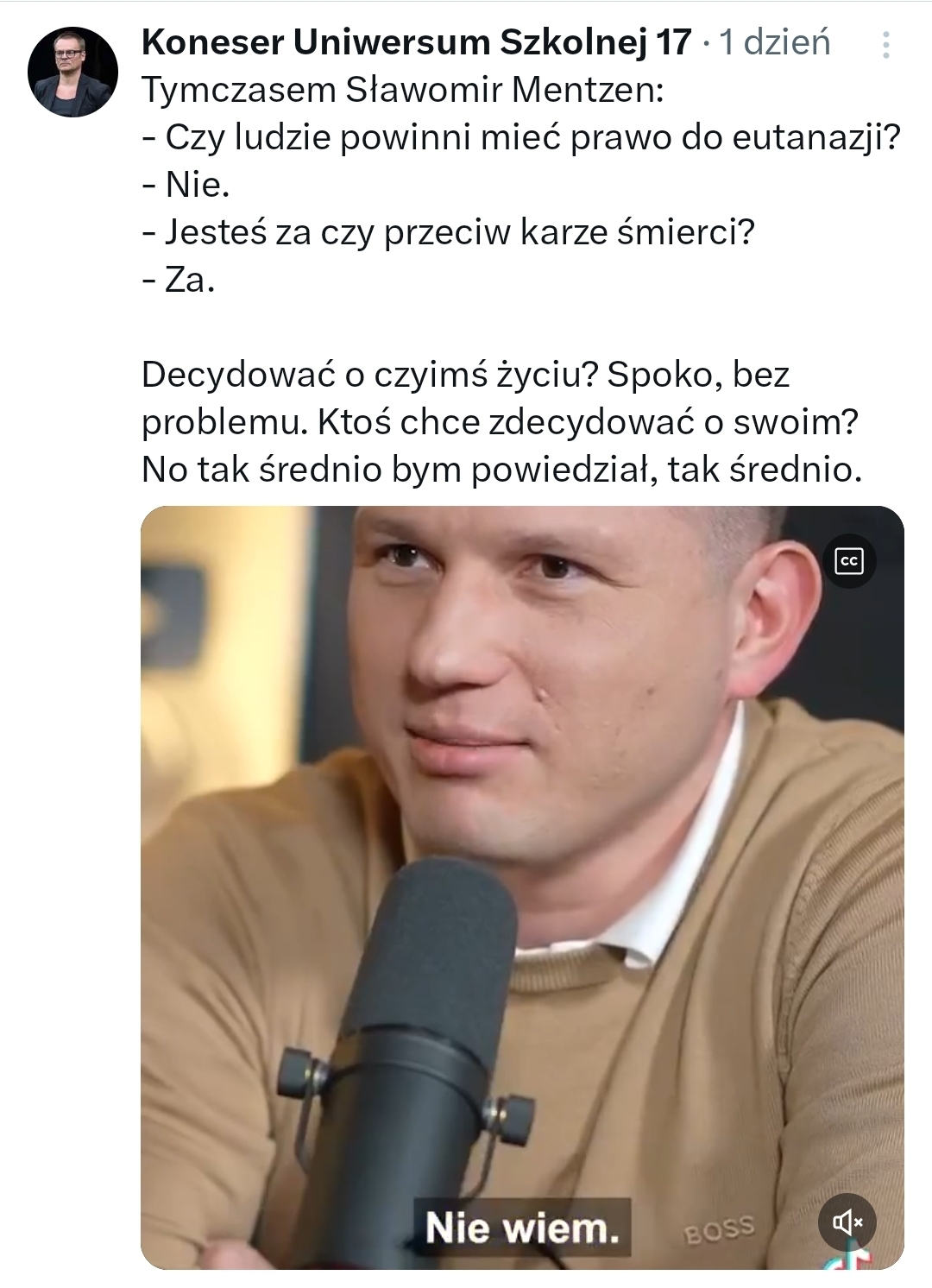 @galicjanin: Bardzo dobry postulat. Można wprowadzić razem z legalizacją eutanazji. Decydowanie o swoim życiu jak najbardziej tak, każdy powinien mieć prawo legalnie je zakończyć. Mordowanie innych ludzi nie.
