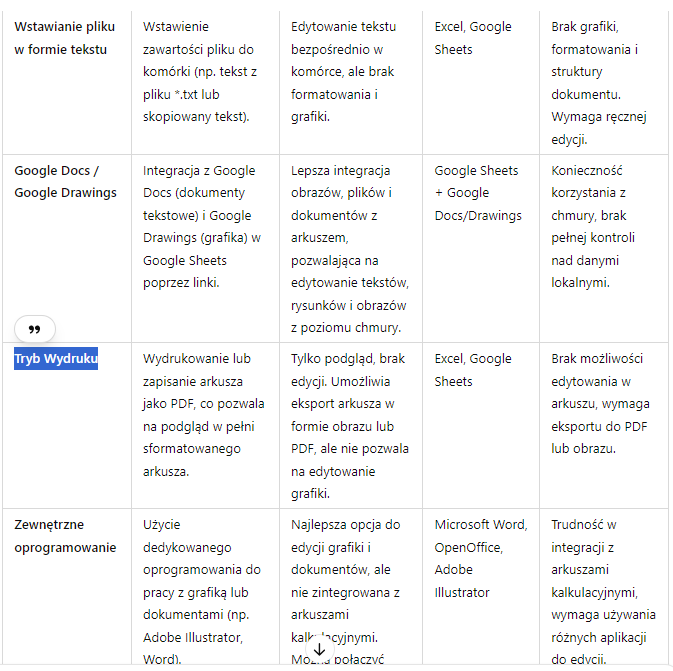cd AI sugeruje właśnie tryb wydruku stąd moje pytanie.. ale chyba też nie przejdzie chyba że jakaś struktura pdf edytowalnego.. zeby zapisać wszystko w jednej komórce? np. większe zdjecie lub kilka stron odt..