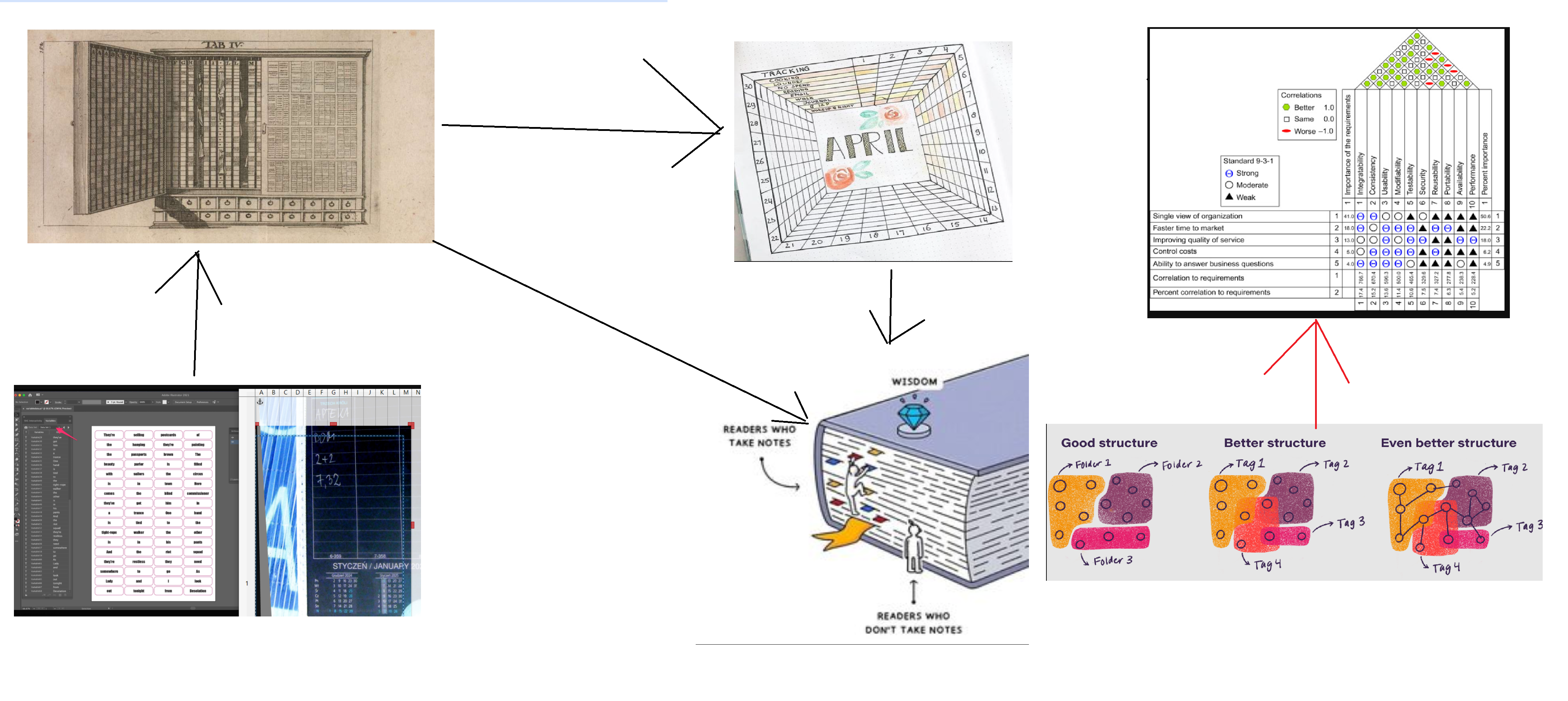 w skrócie zatem chodzi o przechowanie treści bezpośrednio w arkuszu. przypisanych do pojedyńczej komórki, dzięki czemu - możliwe jest porządkowanie całości tych danych (sortowanie, filtrowanie także nieozpoznanego wewątrz jpg, pdf pisma ręcznego, tabel etc) - co aby działo poprawnie wymaga bezpośredniej widoczności - bez utraty już sformatowanych informacji (np. jak jpg, odt, pdf) na poszczególnych tych komórkach