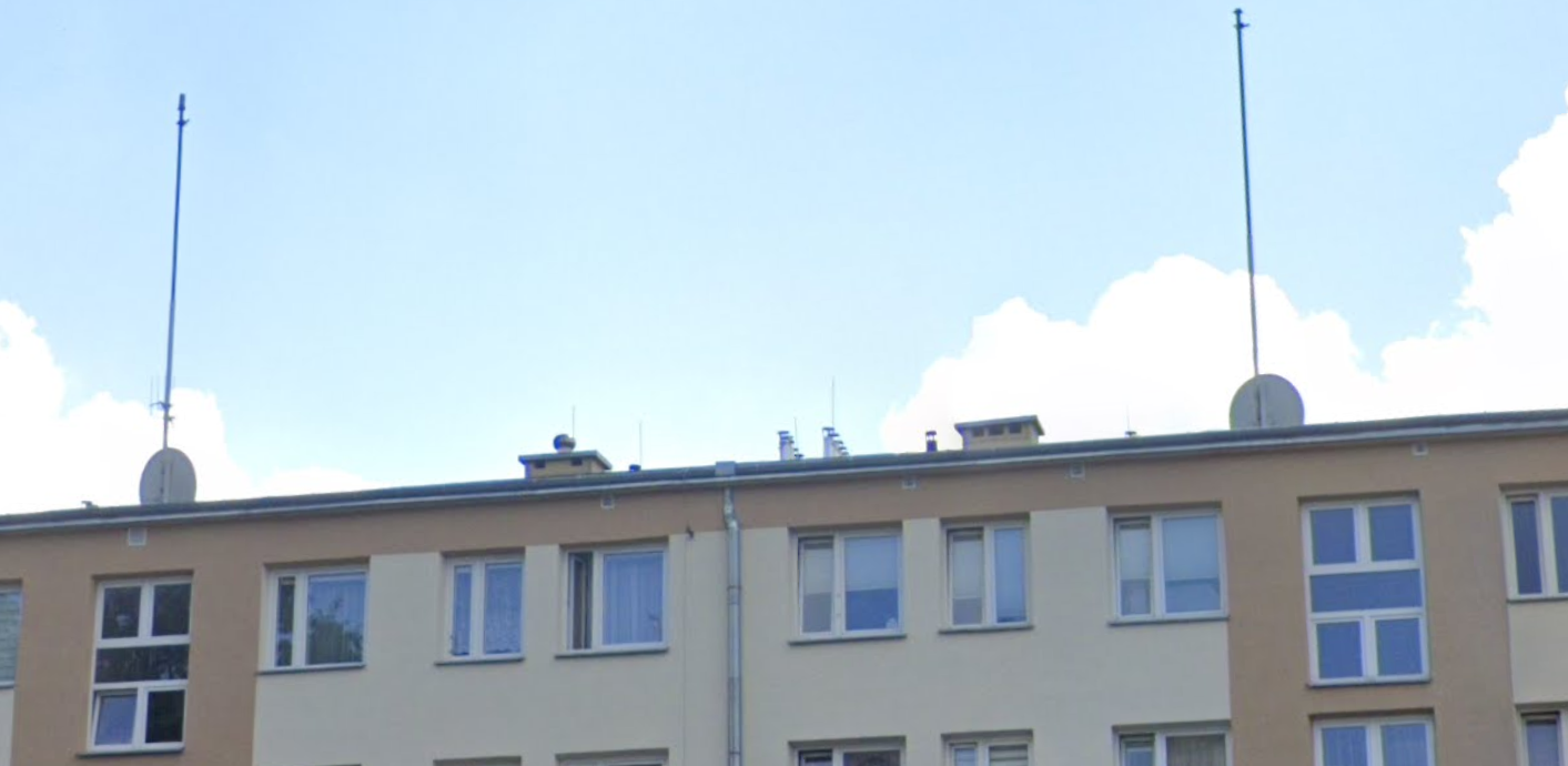 Pobierz@niedasieukryc: Maszty wyglądają na stare, typowe PRLowskie montowane wtedy na blokach na potrzeby AZARTów. Wygląda na to że anteny naziemne zostały zdemontowane, a te czasze satelitarne można wyjaśnić na 3 sposoby: