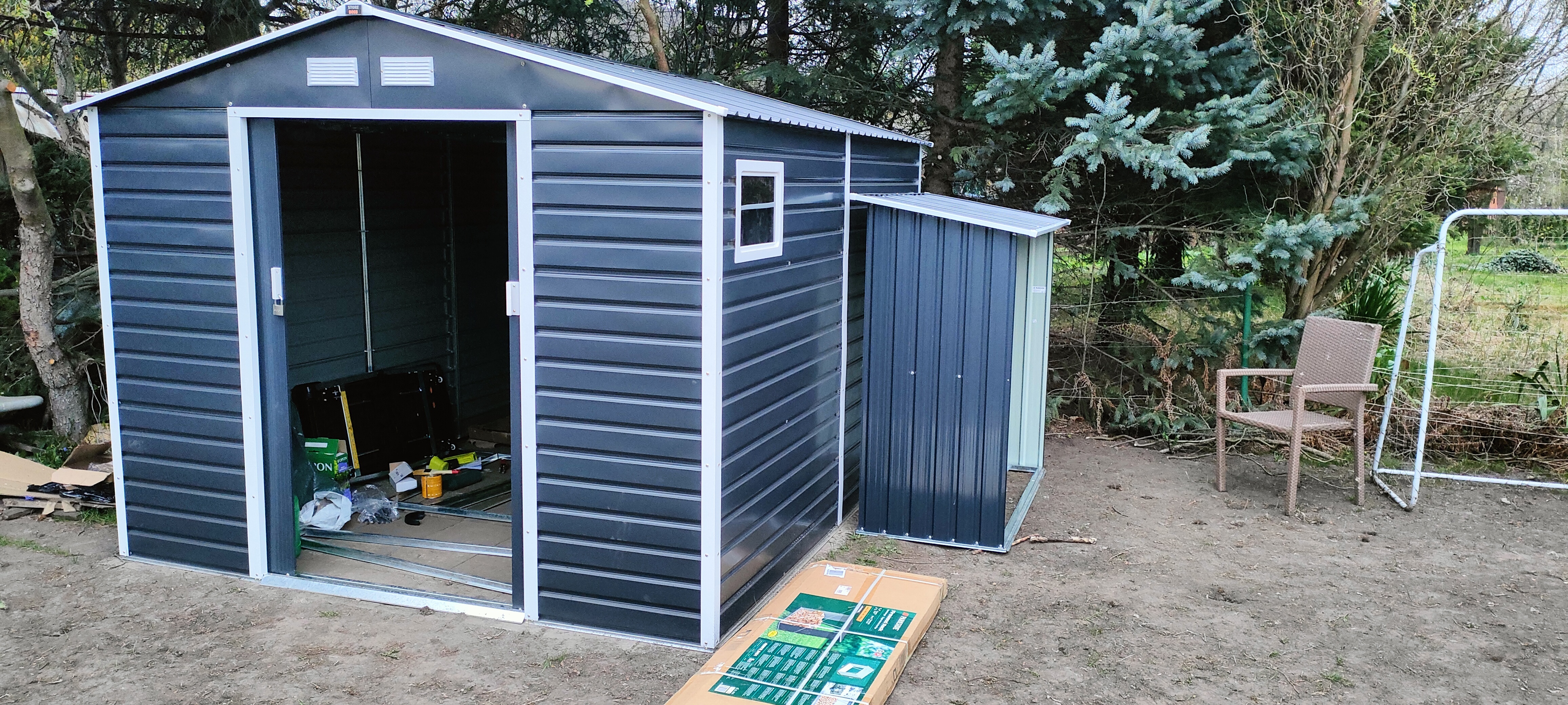 Jakieś 8-9m2 w środku, Store Boss Malmo. Dorzuciłem dzis profile, kupuje osb i zrobię podniesiona podłogę.