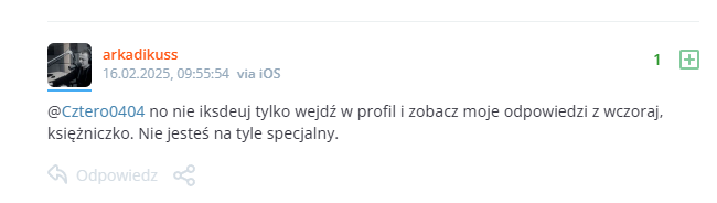 Za to TWÓJ następny komentarz w moją stronę po tygodniu czy dwóch (daty są pod ksywami) taki