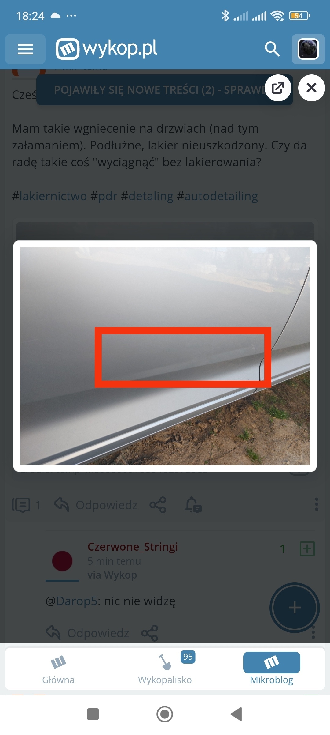 Mam takie wgniecenie na drzwiach (nad tym załamaniem). Podłużne, lakier nieuszkodzony. Czy da radę takie coś "wyciągnąć" bez lakierowania?