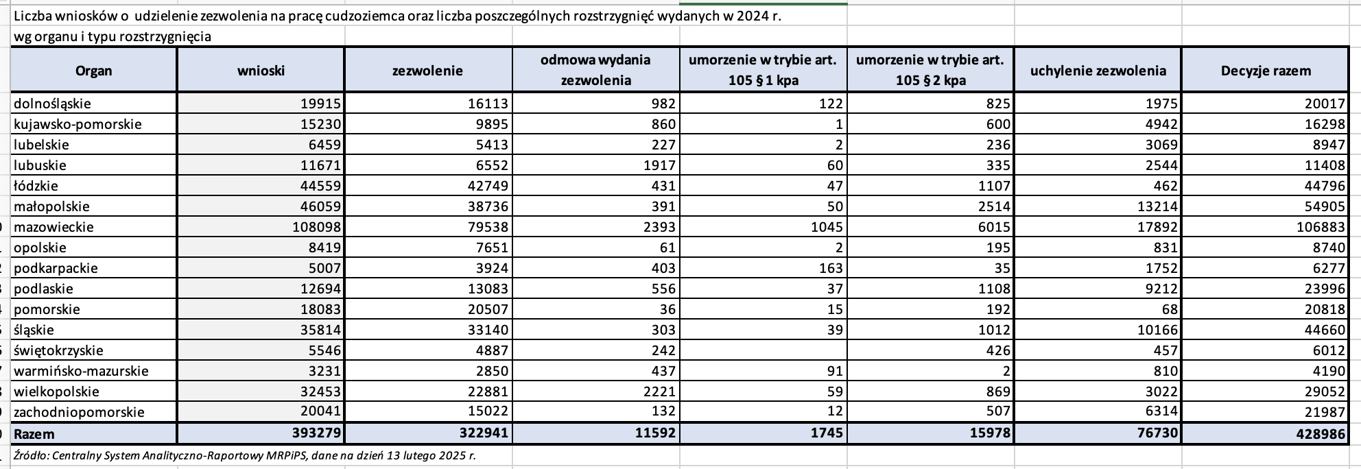 Tu masz screen z excela ze strony https://psz.praca.gov.pl/-/8180075-zezwolenia-na-prace-cudzoziemcow