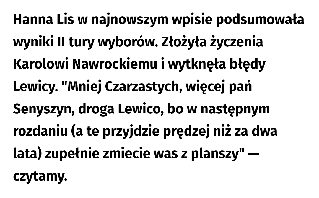 Przecież sama Senyszyn tym "przekazaniem insygniów władzy" jakimi były te korale załatwiła Rafałowi te solidnych kilka punktów procentowych, więcej, niż sama zdobyła w pierwszej turze.