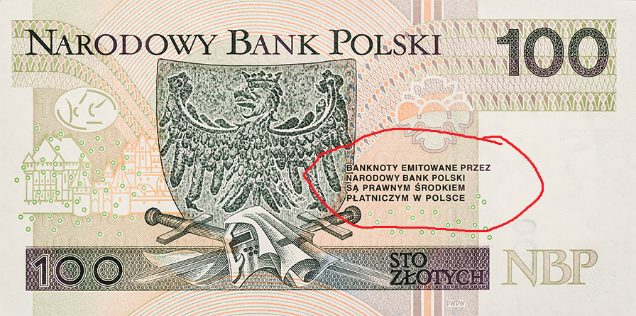 Banknot należy do ciebie jako posiadacza, ale jest aktywem emitowanym przez państwo i i zachowuje wartość dlatego, że państwo go gwarantuje i akceptuje go w rozliczeniach podatkowych.