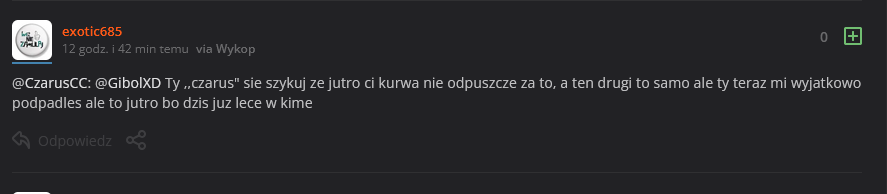 @GibolXD: Po tym jak @CzarusCC oficjalnie mi zagroził r---------m się, odpusczam ci bo ty pewnie masz tyle honoru i zasad ile on czyli zero, niebez powodu majac 30 lat dalej nie zaruchal