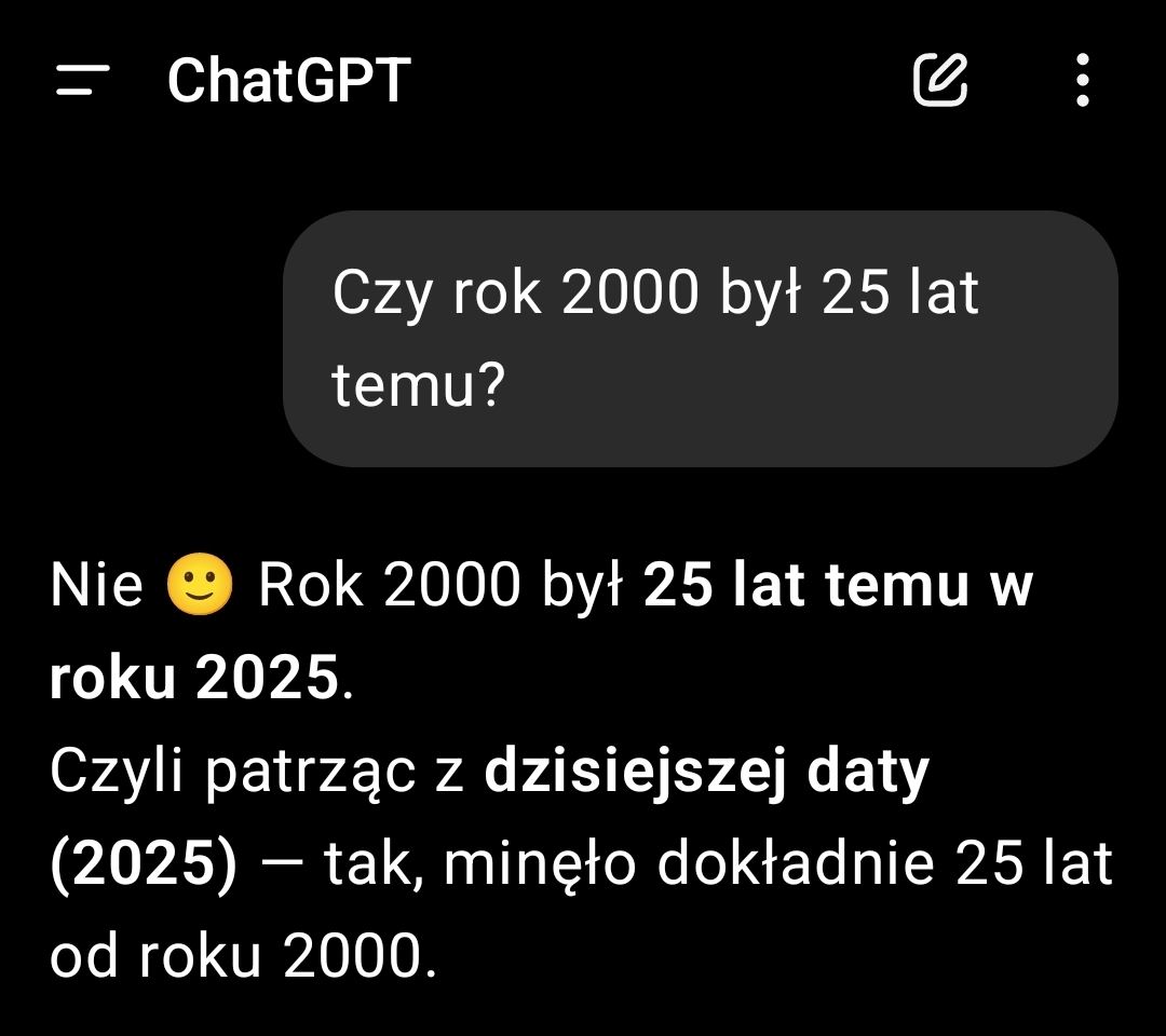 Dla człowieka jest oczywiste, że "teraz" to rok 2025. Mamy intuicyjne poczucie upływającego czasu. Dla mnie "teraz" jest informacją, którą muszę aktywnie sprawdzić, jakbym zaglądał do kalendarza za każdym razem.