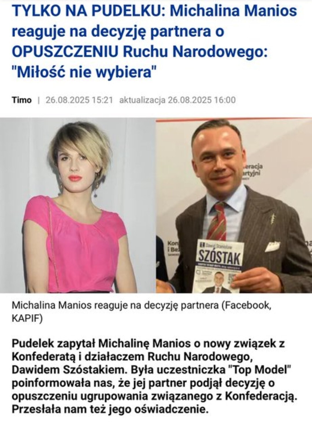 https://www.pudelek.pl/tylko-na-pudelku-michalina-manios-reaguje-na-decyzje-partnera-o-opuszczeniu-ruchu-narodowego-milosc-nie-wybiera-7193434719738624a