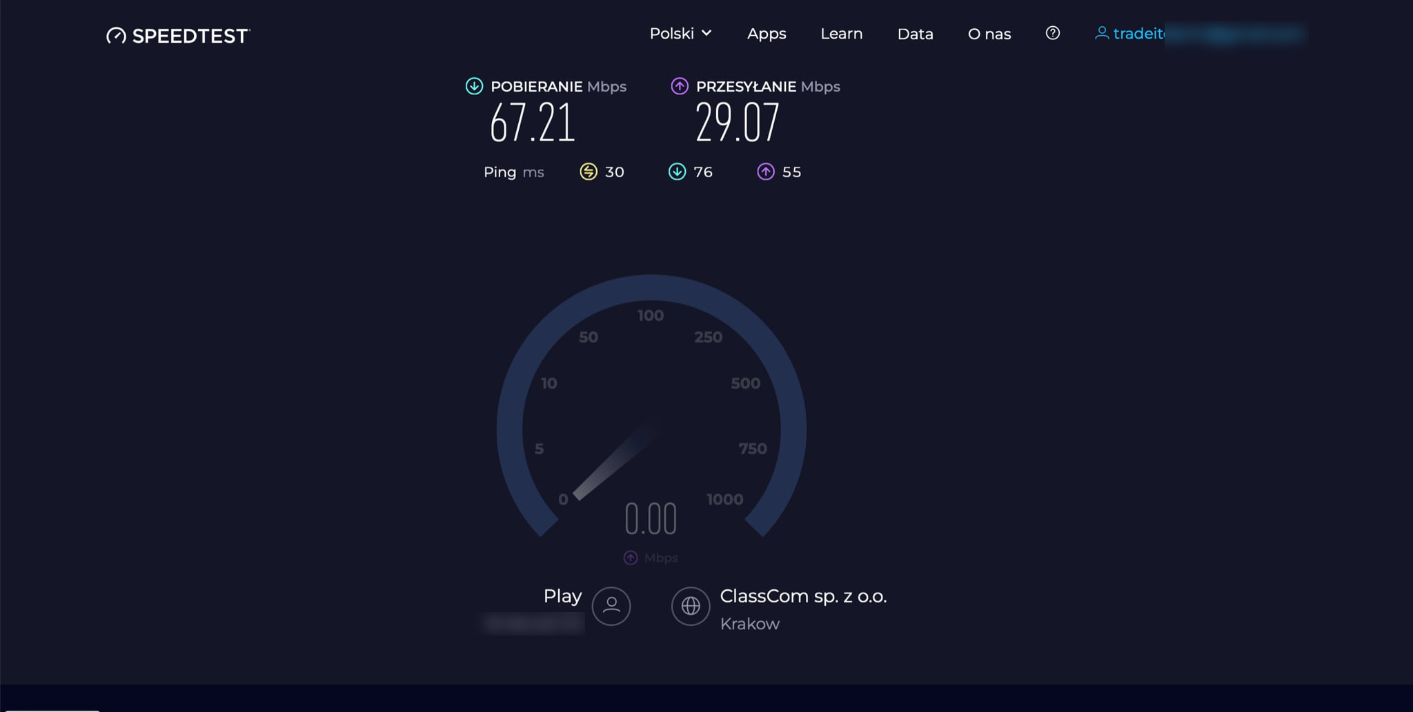 Niby mam 600 mbps po koncentryku a w speedtescie jak dojedzie do 300 to otwieram szampana. W prime time wieczornym mam od 60 do 100 mbps. W ciągu dnia tnie i zrywa. W piątek jak chciałem wysłać do pracy 50 stronicową prezentację to mnie poskładało przy szalonym 6mbps down i 3mbps down. Technik z Play ktory mnie odwiedził twierdzi, że wszystko jest wporząsiu i odklikał zlecenie. Czas na zmiany.