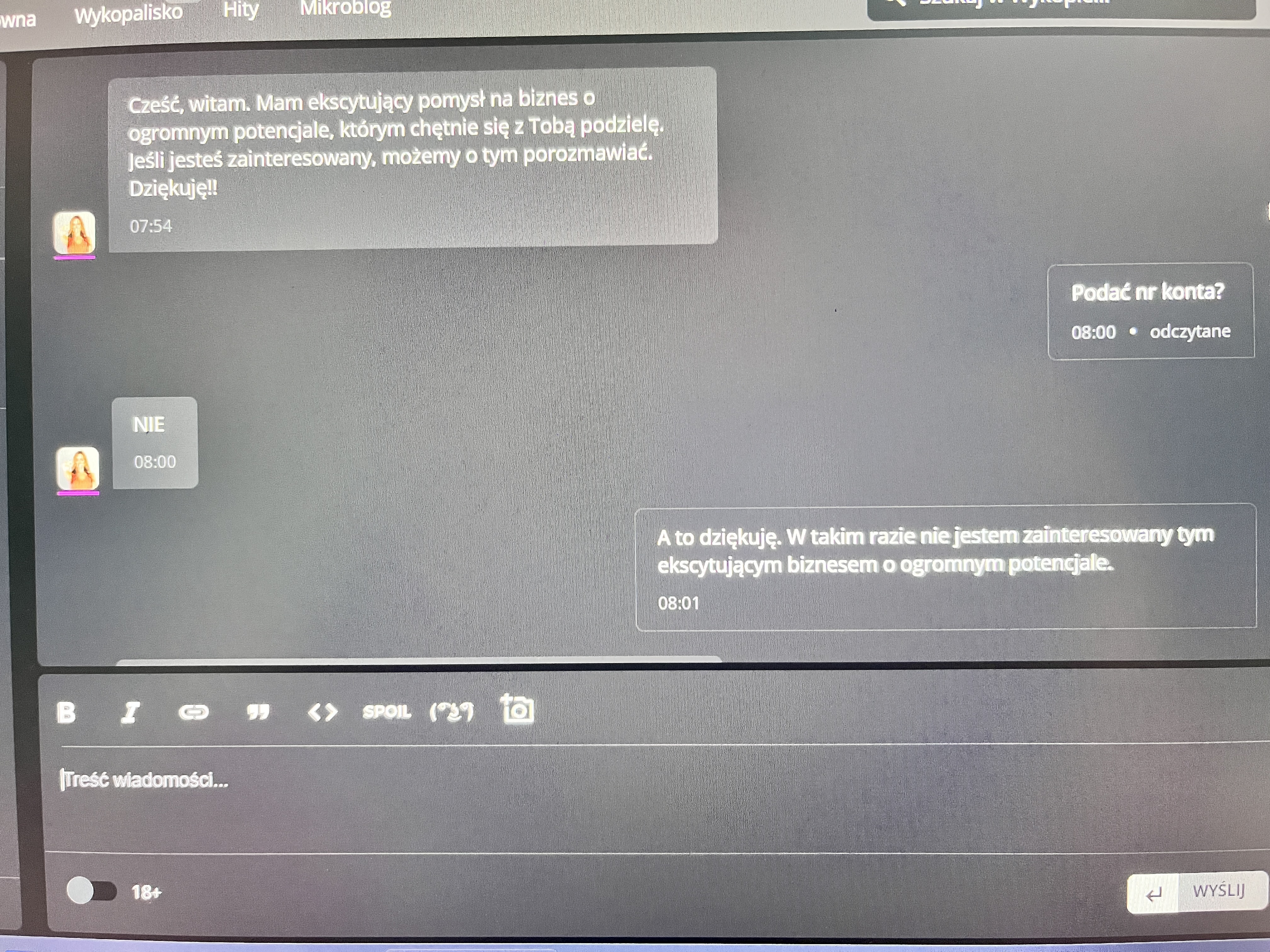 Pobierz@Mateo353: no ich scenariusz tak ale nie mu dużo rzeczy którymi mogą podejść, a 90% to blik wpłata lub do łapy. Wystarczy żeby ludzie zawsze sobie przypominali, że nie wolno nigdzie wysyłać ani dawać kasy na telefon od kogoś, łącznie z bankiem i policja. Jak dzwoni bank i policja, można oddzwonić na znane numery i po kilku sekundach wszystko jest jasne. Trzecia