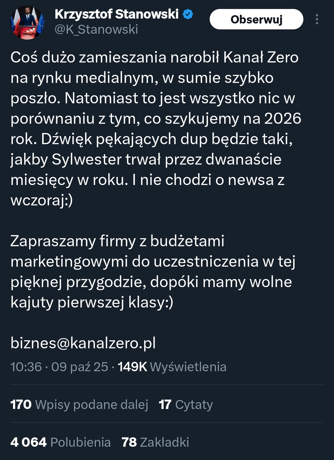 A tak naprawdę największy huk będzie słychać z potężnego dupska Sakiewicza, gdy mu Stanowski odbierze widzów XDDD