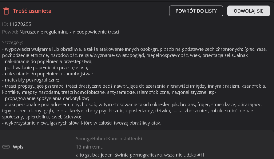 Amigoyamigo Amigoyamigo 09.10.2025, 19:37:44 via Wykop 3 + @SpongeBobertKanciastoRenki: morda cwaniaka, przekreta, śliskiego typa i wlazidupy, gasły zdziwinia