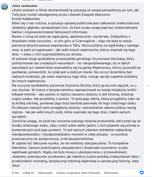 Pobierz@rozowy_dzban: napisali, że mieli sprzęt jak inni turyści. Rozumiem, że raki czekan albo kije mieli. Skoro usunęli zdanie o ubezpieczeniu to jednak widać tutaj nawet nie manipulację, ale kłamstwo. Litwini może i koloryzują, ale opis na Tatromaniaku kłamliwy po prostu