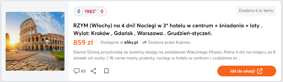 Również pozdrawiam, ale z gminnego <20k, gdzie bez znajomości znalazłem pracę z której mógłbym bez bólu pojechać do takiego rzymu