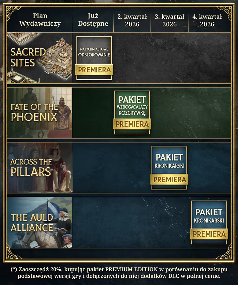 Jeśli idzie o Polskę — u nas nie rządzi Piast, tylko jakiś lokalny szlachcic. Sama dynastia Piastów rozrosła się jednak potężnie na Europę, zasiadają na tronach Anglii, Szwecji, Mediolanu. Polska postanowiła zostać potęgą kolonialną i kolonizuje sobie wschodnią Kanadę, gdzie ma już całkiem spore posiadłości. Na podwórku krajowym radzi sobie średnio: od strartu gry zdobyła tylko Pomorze, część Halicza i Wołynia, unii z Litwą brak.