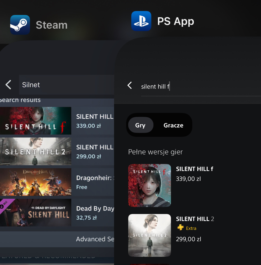 @paluszki_rybne: nie no tutaj to poleciałeś, na PS5 nowe gry kosztują 330zł/350zł, na PC na steam 240zł/290zł, więc nie masz racji akurat się składa, że gram i na PS5 i na PC i na NS 2, więc widzę różnice w cenie gier a co do Nintendo, cena gier po ich podwyżce nadal jest w okolicach gier na PC, Bananza za 280zł, nowe pokemony Z/A już można kupić nowe za 260zł